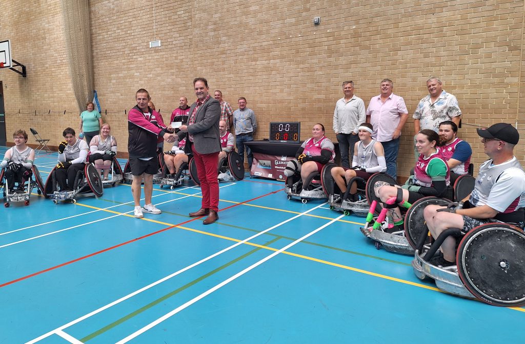Four Lodges combined to present the Taunton Gladiators Wheelchair Rugby Team with £1000.00. Representatives were there from the following Lodges; Fidelity and Sincerity, Corinthian Pillar, Somerset Military and New Zealand. Tony Smith and Jules Alan were there to receive the cheque from Chris Waterhouse the Past Master of New Zealand Lodge. Tony is a Devon Mason from Crediton and ex military.