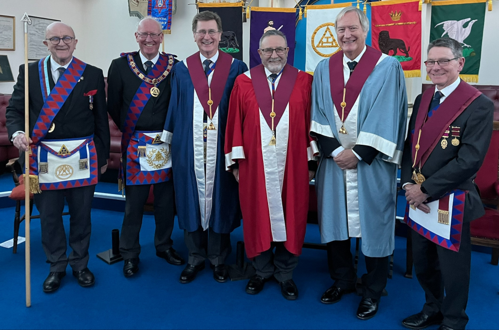 E. Comp Richard Hicken inducted E Comp Richard Ellis in the chair of Zerubbabel; whilst E Comp Richard Ellis inducted E Comp David Maddern into the chair of Haggai. E Comp David Maddern carried out an excellent installation of E Comp Robert Paice into the chair of Joshua, plus presented the Robe Address. The Principals appointed the officers with decorum. With Sojourners all being Companions.