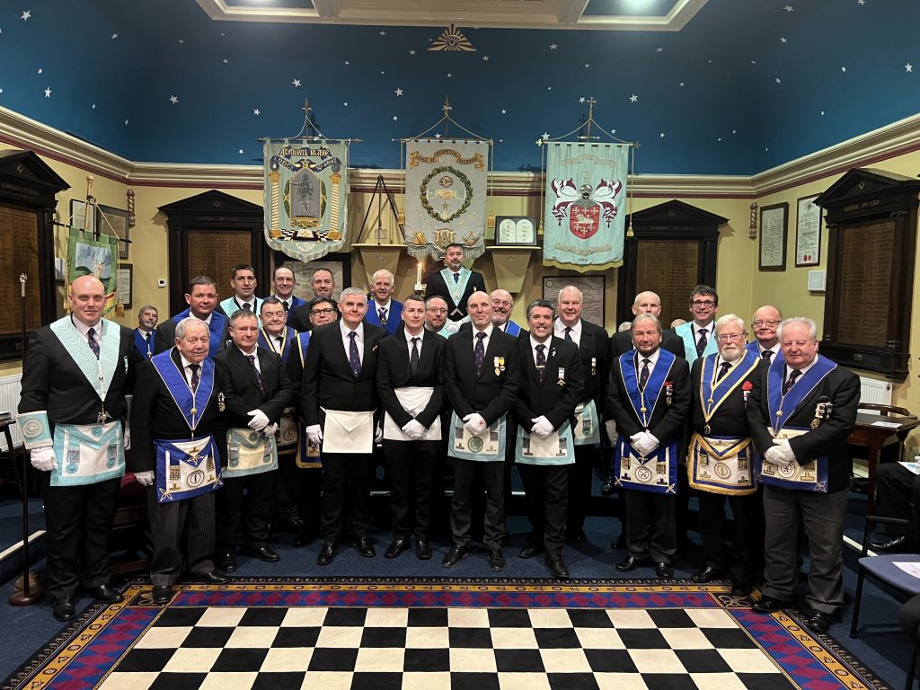 It was a wet and cold night in Bridgwater, but that did not stop a wonderful evening at Admiral Blake Lodge. Seventeen members of the Rural Philanthropic Lodge (plus two additional guests from Portcullis Lodge) attended on their annual Christmas Fraternal Visit, where they were treated to a lovely Initiation of Andrew Smith.