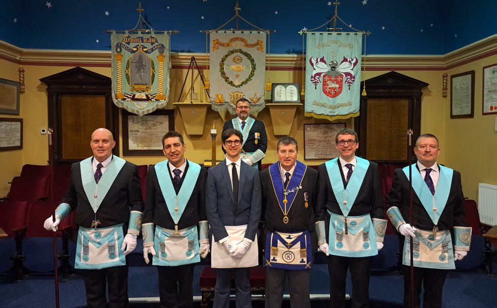 The brethren of the Admiral Blake Lodge 4692, Bridgwater were pleased to hold a special initiation ceremony at their February 2024 meeting. The son of the Lodge’s Worshipful Brother Chris White was initiated into Freemasonry as a Lewis, with Chris taking the Master’s chair for the ceremony.