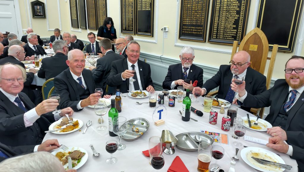 With all this going on, both Companions and Master Masons needed refreshment, so the Chapter, with the help of the Catering Team at Weston pulled out a few stops and over 80 of us sat down to an excellent meal in a packed dining room.