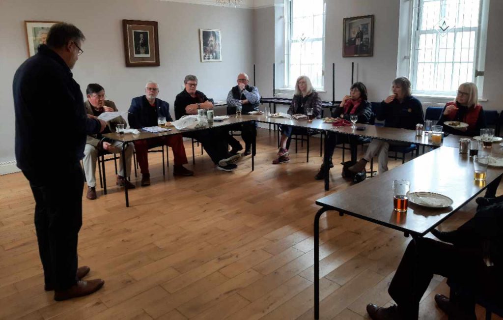 The Midsomer Norton & Radstock Rotary Club had their lunchtime meeting at the Lodge Hall recently. After a little bit of Club business and a buffet lunch they were given a talk about Freemasonry in general, the History of Connaught Lodge and our Charitable work by W. Bro Kevin Chard, who also happens to be the current Club President, and W. Bros Jerry Hann and Chris James. This was followed with a tour to the Temple where some of the symbolism was explained.