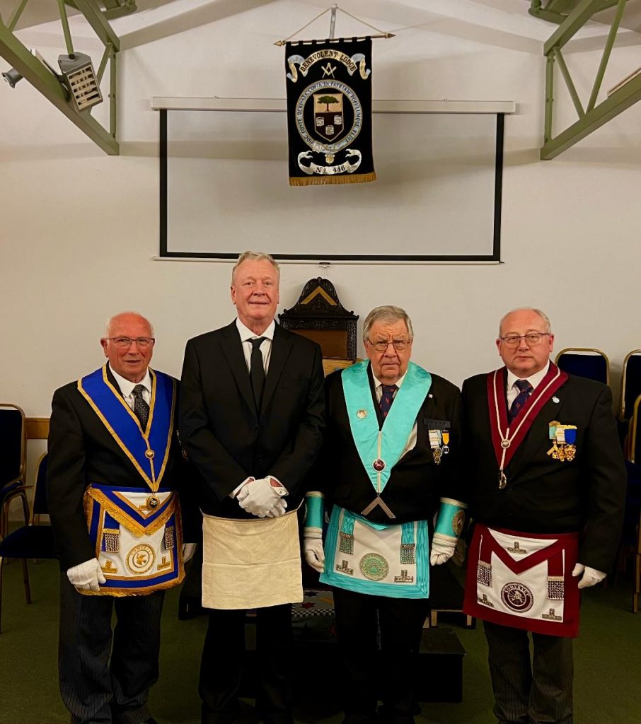 A lively and vibrant Wells & Mendip Museum welcomed its latest Brother into the Benevolent lodge 446 at the end of April with the initiation of Richard Brooks. The Brethren could be biased (!) but it was a first rate ceremony with the candidate excellent throughout. The night was made even more special by father and son Sandy and Joe Guidi being both proposer and seconder for the candidate, with Sandy also being his neighbour. The historic White Hart in Wells once again hosted the festive board where the Entered Appreciate song was led by Barry Davies and the lodge performed the Entered Apprentice Chain – a ritual not that commonly seen, but one of great significance. For anyone interested in visiting Benevolent Lodge and the possibility of witnessing such ritual you are assured of a warm welcome. Please contact the Lodge Secretary via: dovell@icloud.com