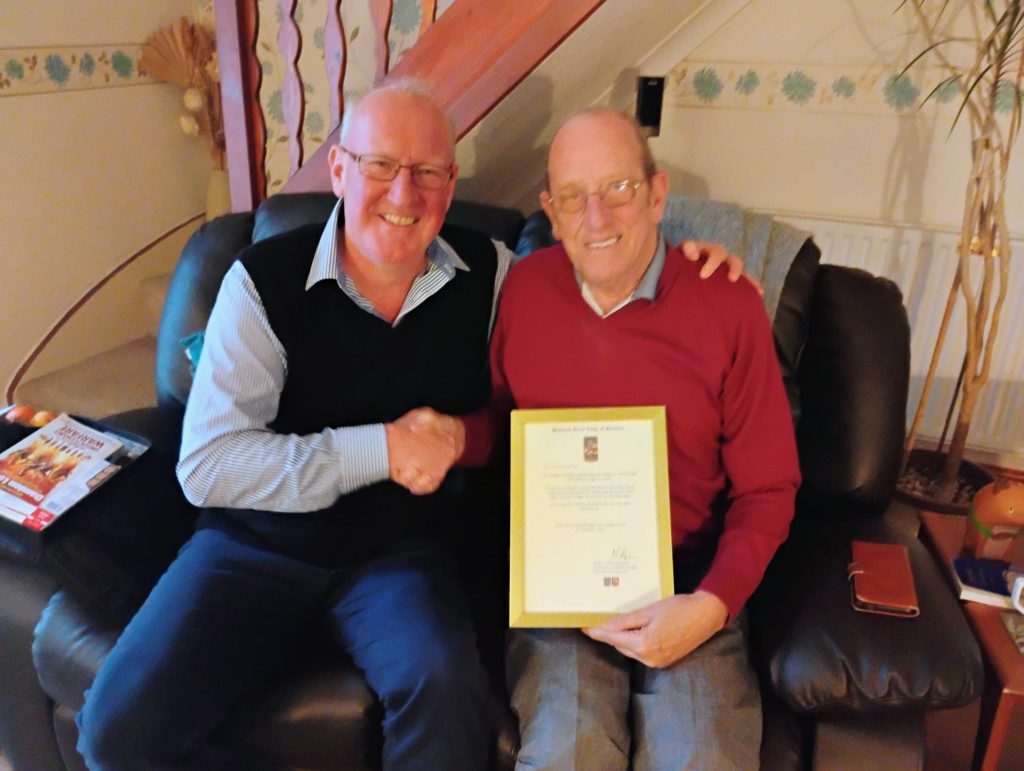 We were also delighted to honour W. Bro Barrie Webster, past master of this Lodge, with his honorary certificate being presented to him by W. Bro Neil Hurcum at his home.