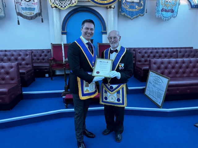 After the installed officers were in place one of the first items was to present a 50 years certificate to W.Bro Peter Newsham who is one of the remaining Founders of Wraxall Lodge, the certificate was presented by W.Bro Rob Hughes and the story’s that followed were well received. We would like to wish Peter a huge well done for achieving this milestone and we look forward to presenting the 60th.