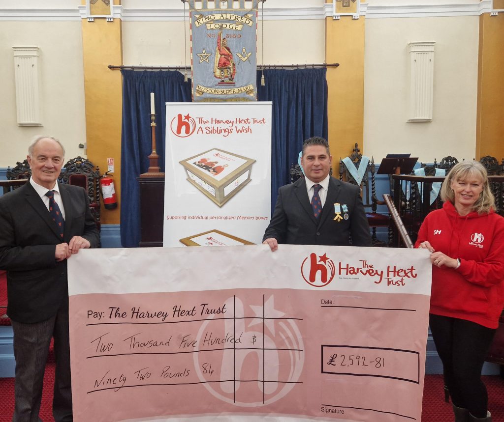 Before the evening’s festivities, Simon Larkins presented a cheque to his nominated charity, the Harvey Hex Trust, as the charity he selected for his year in the chair during, the total amount raised was £2,592.81, a big well done to all at King Alfred.
