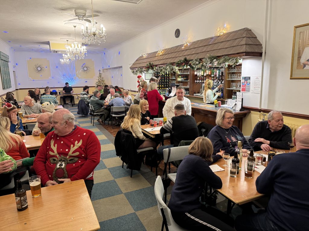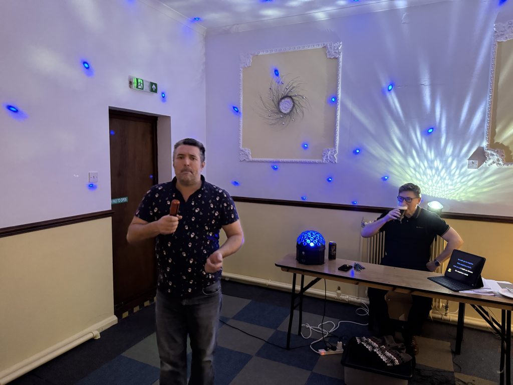 Andy Hodge was playing Nicholas Parsons at the Rural Philanthropic Charity Quiz night, with a Christmas spirit throughout, Christmas Jumpers and Christmas themed questions were top of the bill.