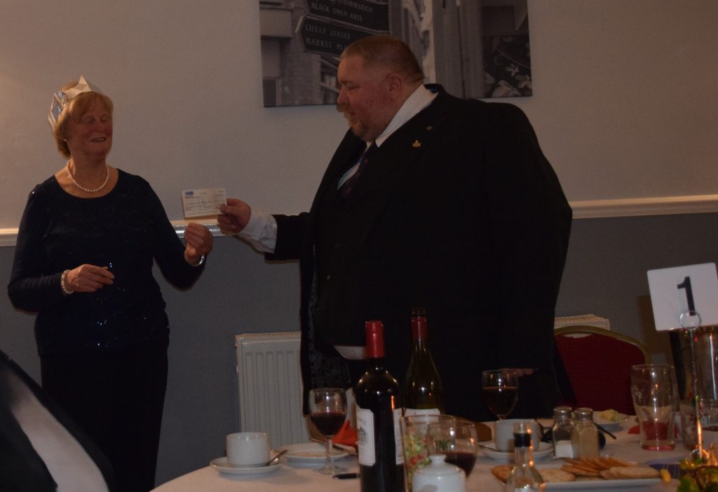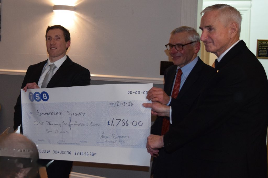 The evening held a special significance as John Wenborn, the Immediate Past Master (having installed Worshipful Master Andy Hickling in October), presented a cheque for £1786 to Somerset Sight, the charity he chose during his term as Master. John presented the cheque to Zdenek Gregor and Liam Harkness of Somerset Sight, who graciously accepted the generous donation.