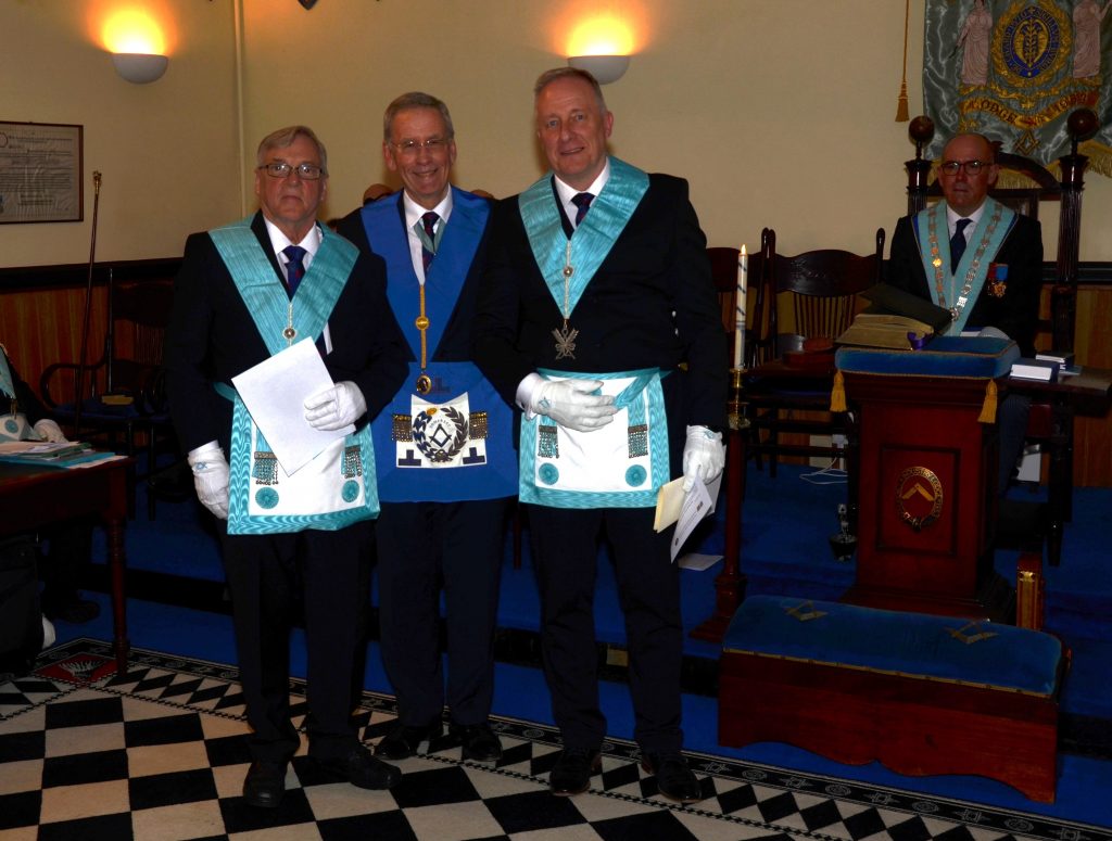 Another fabulous occasion at Prudence and Industry who meet in Chard. The Lodge was honoured by the presence of Right Worshipful Brother Stuart Hadler the Past Provincial Grand Master for Somerset, and the programme for the evening was packed. A double raising was performed with Jonathan Redgrave and Philip Hosken becoming Master Masons. I know both were astonished by their experience. The Master and his team produced a very accomplished ceremony.