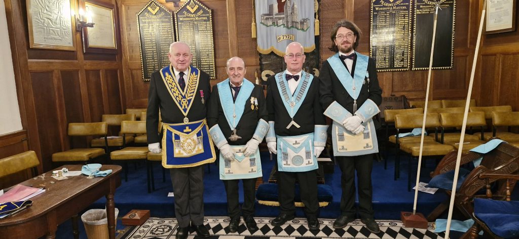 Pictured from left to right, WBro Keith Baker, WBro William Fraser (SW), WBro Keith Bird (WM), WBro Ross Bambrey (JW).