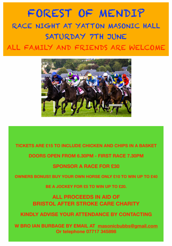 Race night on the big screen being held at Yatton Masonic Hall Saturday 7th June 2025