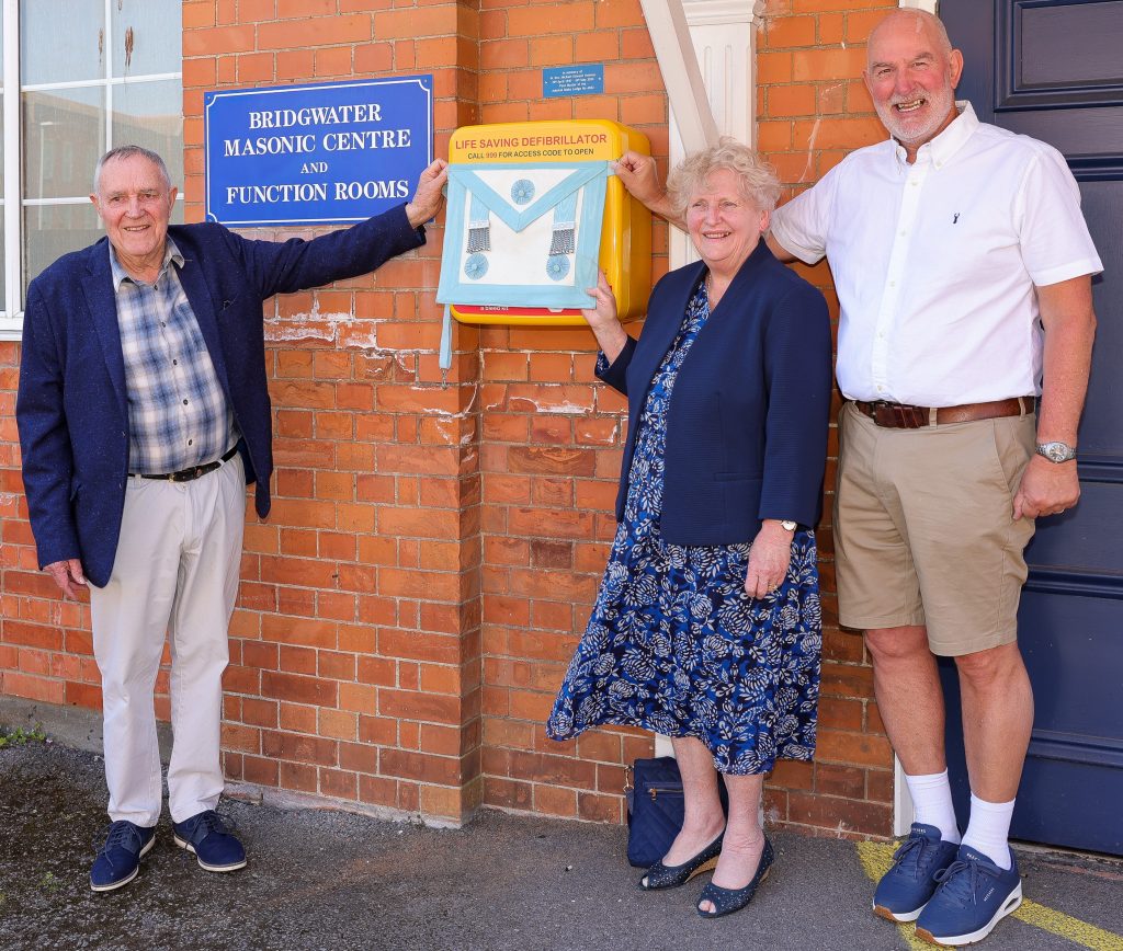 Supported by Norman Hucker and Alan Chambers, Mrs Holman (pictured top) removed the Master Mason’s Apron to officially unveil the life-saving equipment funded by the local Freemasons.