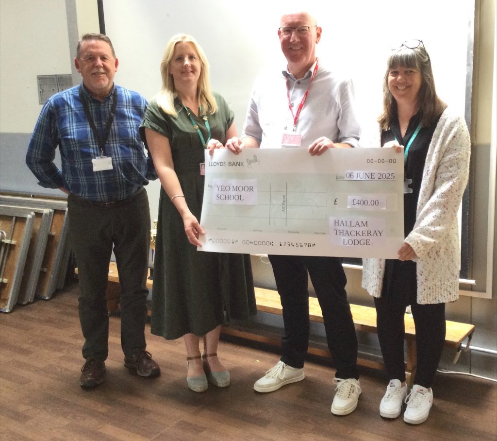 Brothers Ian McDonald and Neil Hurcum, representing Hallam Mark Lodge and Thackeray Royal Ark Mariner lodge, presented a cheque for £400 to Yeo Moor School in Clevedon, on Friday 6th June 2025.