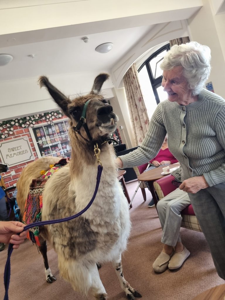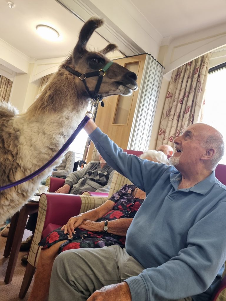 have experienced recently. The care home welcomed Harry and George, two llamas