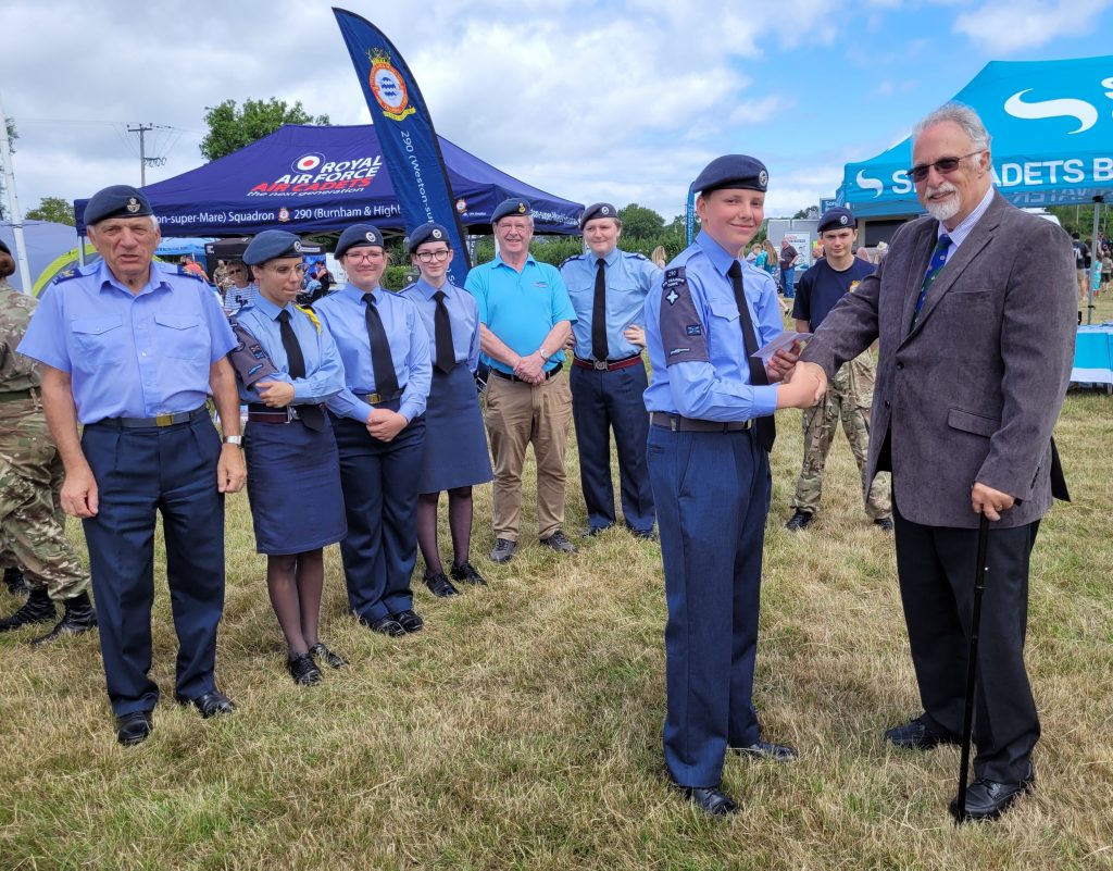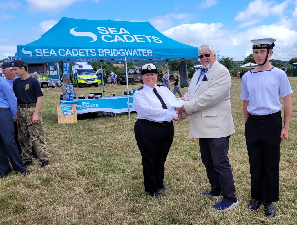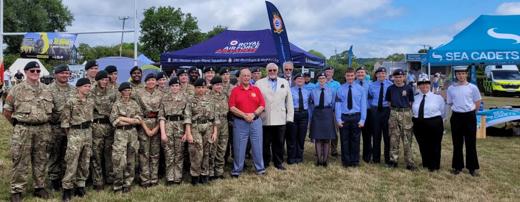 During the recent Bridgwater Armed Forces day, donations were presented by brethren from Somerset Military Lodge (SML) to the local Cadet Forces, with a £1000 donation each to the 290 Squadron Air Cadets, Bridgwater Sea Cadets and the Army Cadets. The funds are intended to assist with training, equipment, or other essential resources that further enhance the outstanding work these groups deliver.