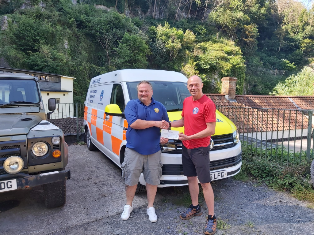 Firstly with Avon and Somerset Rescue at cheddar George with a donation of £1000.
