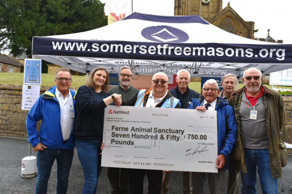 - A cheque for £750 to Ferne Animal Sanctury, aiding their vital work with abandoned and vulnerable animals, was presented by WM Ian Pamplin.