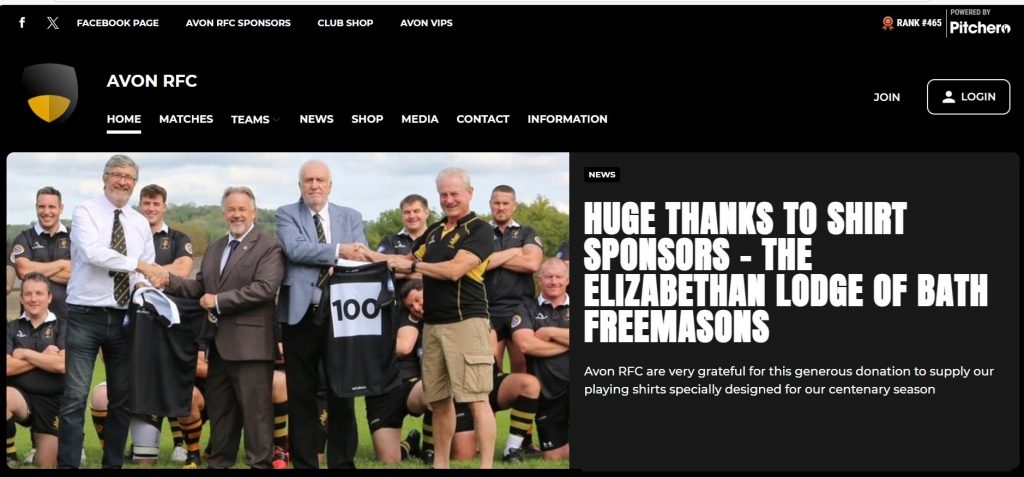 As they prepare to enter a new Masonic season next month, Elizabethan Lodge is proud to announce their continued support for the local community – this time by sponsoring the centenary season shirts of Avon Rugby Football Club.