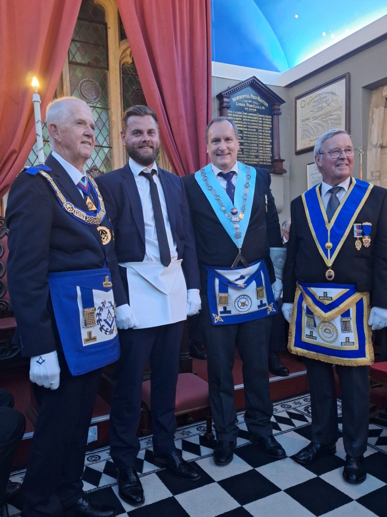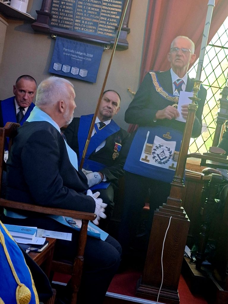 We also had a special initiation to perform. The son in law of one of our members John Foad was being initiated. The candidate Liam Harper is a golf professional. The Master asked John to change positions with the current Junior Deacon so that he could lead the candidate around the lodge. Despite a little bit of understandable nerves from the candidate he very much got into the “swing” of it and very much enjoyed the ceremony. John also performed the charge after initiation in splendid fashion.