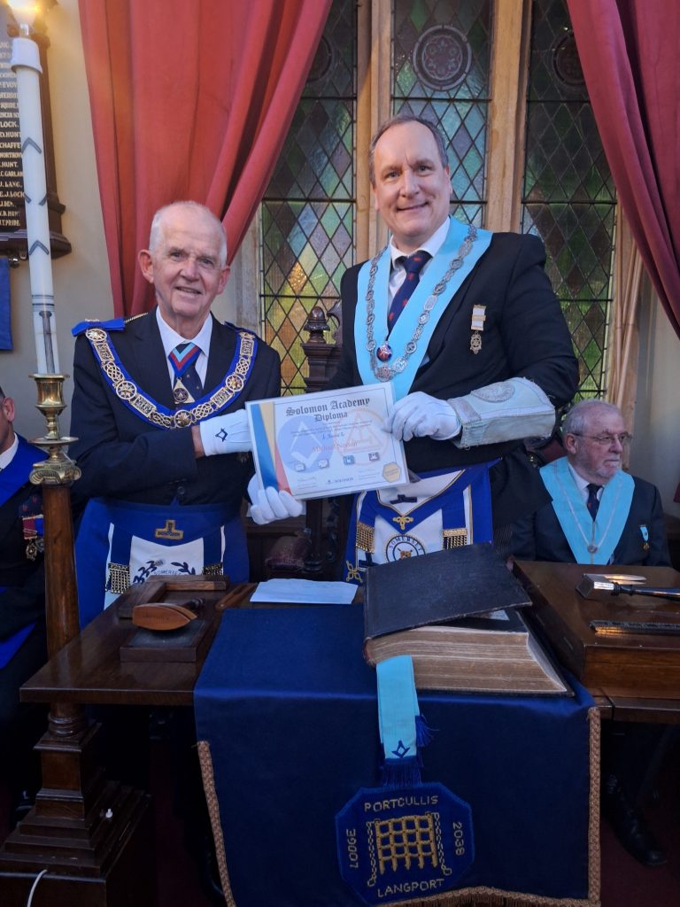 The PGM also presented to the Master a Solomon Academy Diploma for successfully completing all four Solomon courses. The Master of the Lodge, who is also an Assistant Provincial Mentor encouraged all members to undertake their learning on Solomon. It is not just for newer members but will benefit everybody by making a daily advancement in their knowledge. The Solomon Academy Diploma is a fun and informative way to consolidate this knowledge. It offers short study courses in the four key stages of your Masonic journey; Entered Apprentice, Fellow Craft, Master Mason and Companion.