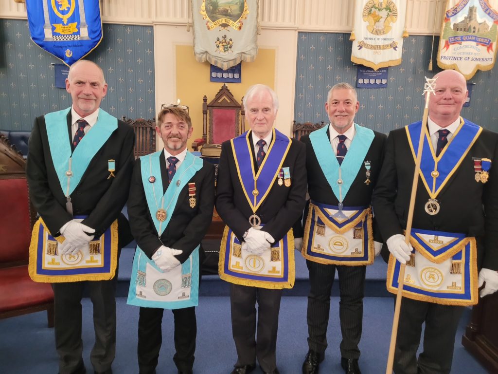 The PJGW Tedd Toon, his DC Jeff Body, the wardens, and W.M. Of the Lodge