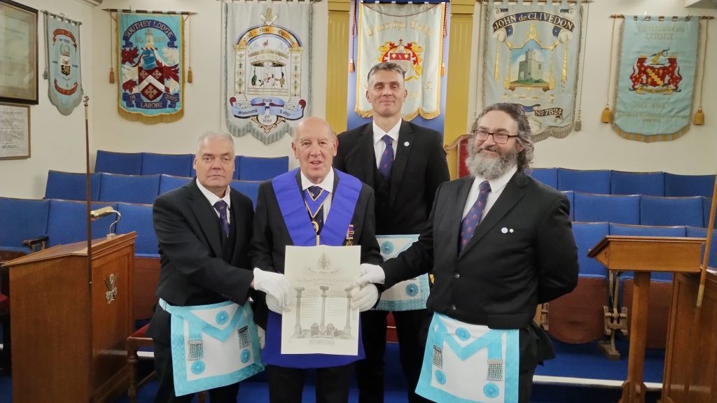 Martin Slocombe presented not one but three grand lodge certificates to Matt Buck, Jon Portrey and Stephen Ellis, Martin then did the most inspirational and passionate walking charge that not only had the three members but the entire lodge hanging on his every word.