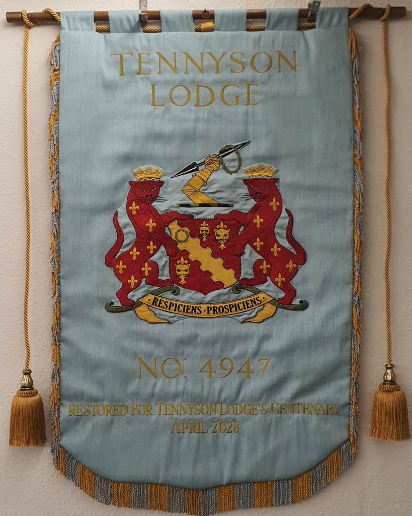 And finally…. to top it all off. Ahead of Tennyson’s Centenary Celebrations, the lodge banner, which was lovingly restored over the summer. Is back again, holding pride of place over proceedings looking good as new.