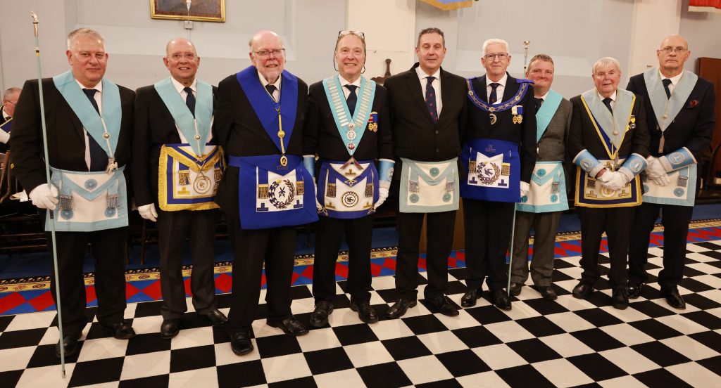 Darren was provided with relevant information to be able to carry on the Raising. which was then proceeded with, with the WM topping and tailing whilst Barrie conducted an exemplary “fifteen fellowcraft” and “recitation”, thanks Barrie. However, the star of the show (both an organised part of the ceremony but also an emergency stand in was our very own Geoff Perrin, he was word perfect, conducting the (Queen’s) apron presentation, the Traditional History and the Working Tools. Thanks ever so much Geoff, the next beer is definitely on us.