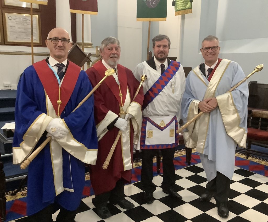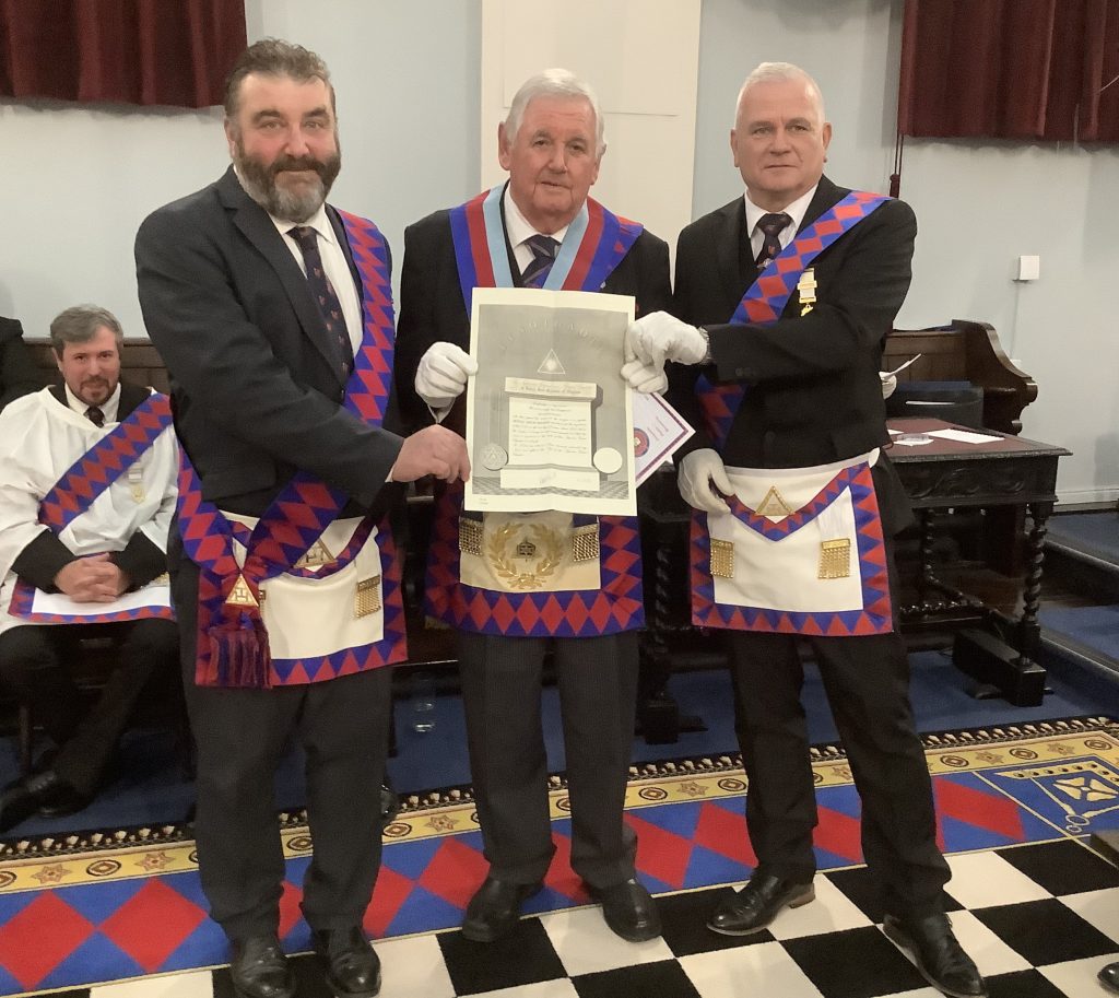 Under the guidance of the new team of Principals, ably led by ‘Z’ Mike Meatyard, the Chapter carried out an Exaltation ceremony and the presentation of Grand Chapter Certificates to 2 of its newest members. The Chapter recently modified its ‘Perfect’ ritual, so that the workload and participation is shared more evenly across the Companions. Mark Williams of the Emergency Services Lodge was the Exaltee and stated at the Festive Board that he had enjoyed the Ceremony and looks forward to playing his full part in the Chapter going forward. The Chapter warmly welcomes him.