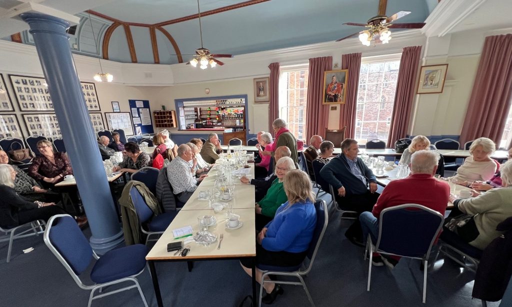The Taunton branch of the Somerset Masonic Friendship Association (SMFA) met in Taunton Masonic Hall on the 5th November. Their meeting theme this month was ‘Soup and Sweet’ – it does what it says on the tin. 5-Star Karen made the diners 3 different soups and no less than 5 desserts, PLUS cheese and biscuits! Huge shout out to the Taunton Masonic Hall staff, Hayley (Taunton Hall manager) had arranged three tables on the diagonal which gave a cosy feel to the event. What was great was that Karen, Hayley and Debbie were able to sit down and join in too, like a big family meal.
