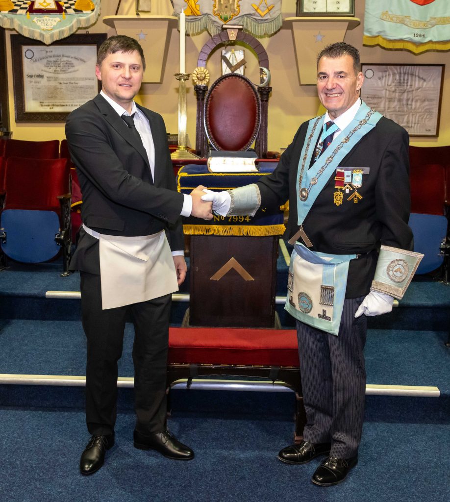 The highlights of the evening were the pleasure of seeing Brother Sandor Nagy take his first tentative steps into Freemasonry and Entered Apprentice Brother Jeavon Lazenby’s debut performance on the floor with a near faultless delivery of the Working Tools .