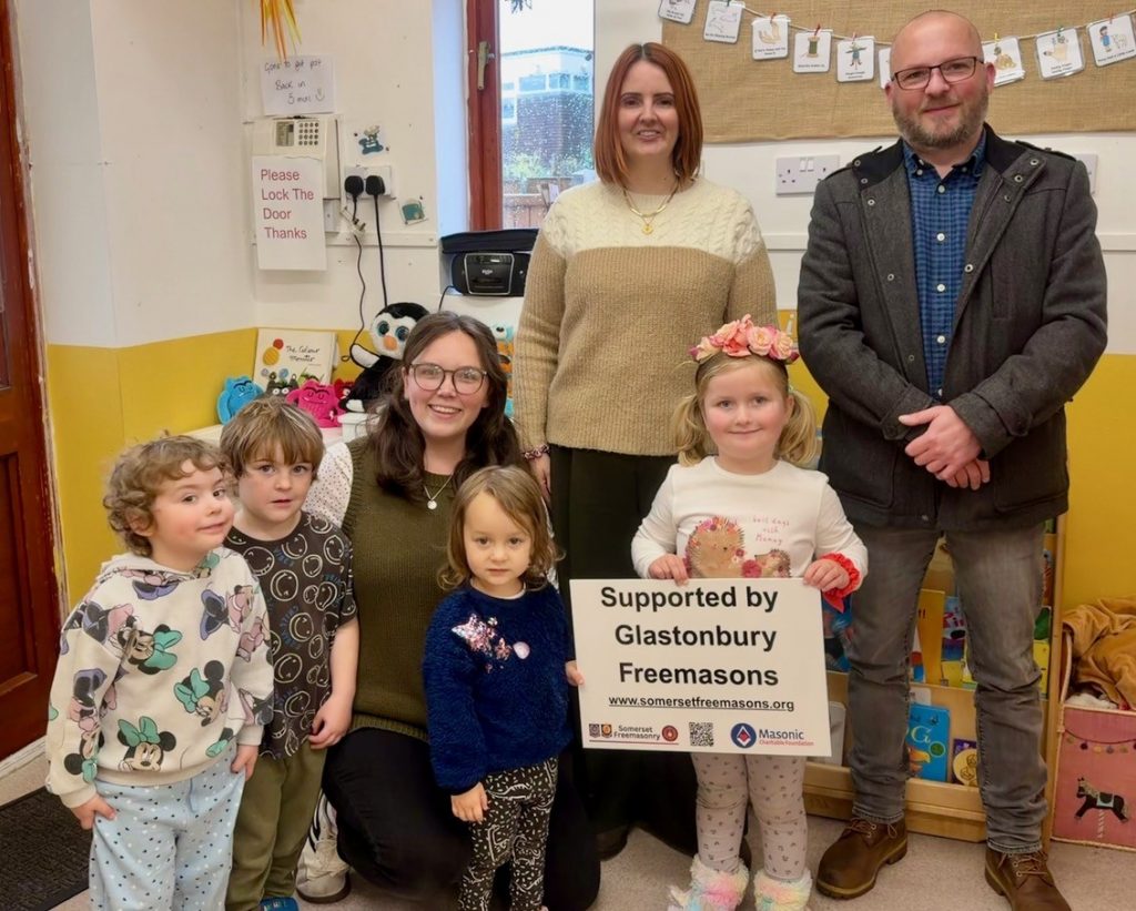 St Dunstan’s Lodge in Glastonbury has presented a donation of £750 to the local St Dunstan’s Nursery, helping fund the creation of a new sensory garden for children with Special Educational Needs and Disabilities (SEND). The donation will contribute towards building an inclusive outdoor space where all children can safely explore and learn together. The nursery, a registered charity, serves local families and is deeply valued by the community, relying on external sources for funding. Lodge Charity Steward Michael Beasley visited the nursery to see their work first hand and hear more detailed plans for the sensory garden. He was delighted to receive a card made by some of the children, for the Lodge.