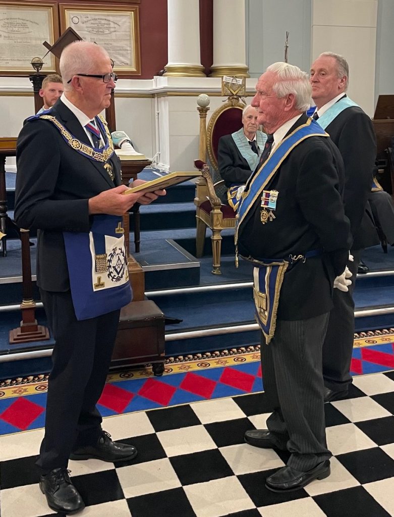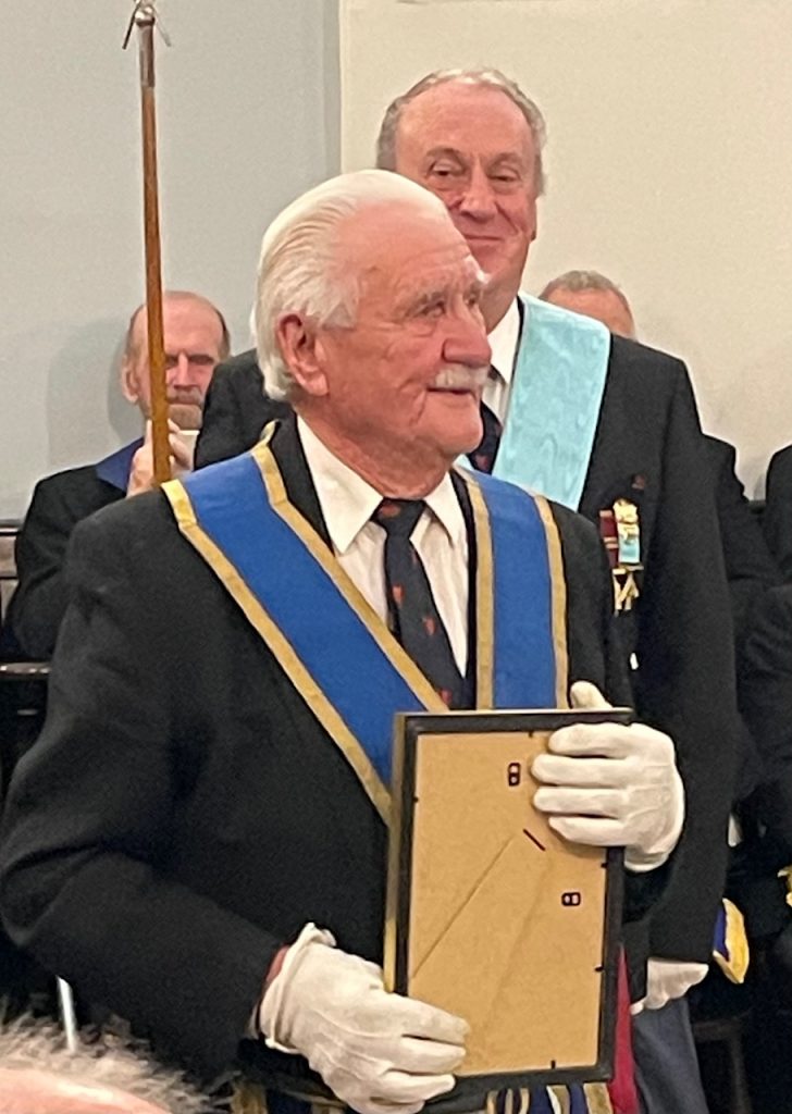 Breaking with the long-standing tradition of only electing those from the brethren initiated into TDL, in 2022 Harry became the first joining member to attain the Chair of King Solomon. Ray summarised Harry’s impressive Masonic career, noting his membership in various progressive orders and his service in many Offices, including Craft, Royal Arch, Mark, and Rose Croix. A truly magnificent Masonic career….