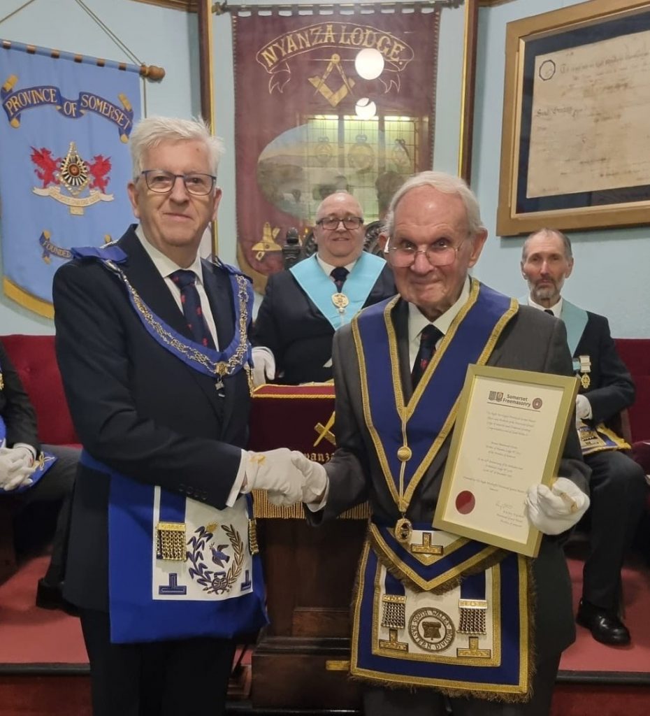 This autumn, two senior members of Nyanza Lodge, Ilminster, received recognition of their remarkable service to Freemasonry.