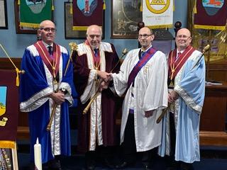The Parrett & Axe Chapter in Crewkerne performed a lovely Exaltation ceremony at their November Convocation to welcome Kevin Voase into the Chapter. A great meeting was followed by the usual enjoyable Crewkerne dining experience! Kevin also won the raffle to add to a very special and memorable evening.