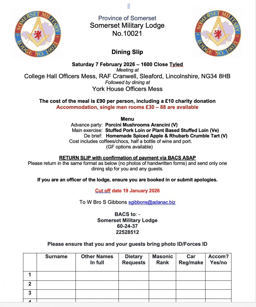 The Ceremony will be a first degree at a £90 per person, including a £10 charity donation, there are 88 single rooms are available, at £30 per night.