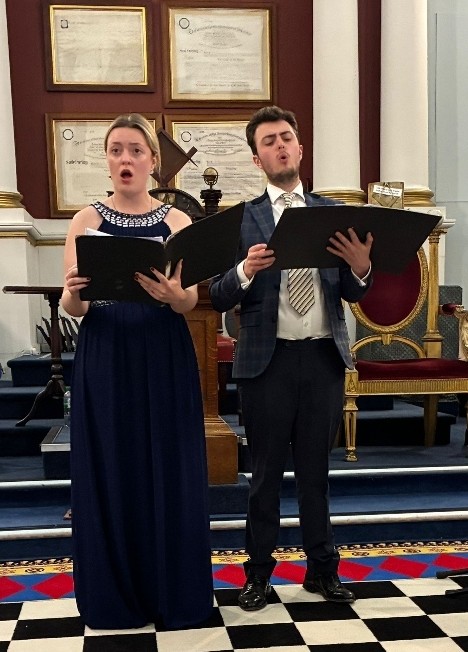 After the meal, we were royally entertained by Gregory and Ellen Steward, an accomplished brother and sister singing duo. Both are highly talented, having attended Wells Cathedral School and then obtained their degree qualifications from the Royal Welsh College of Music and Drama. They have both been soloists in national choirs, won prizes and appeared on radio and TV. Their programme included excerpts from operas (Rigoletto, The Merry Widow) and musicals (West Side Story, Sound of Music, Porgy & Bess), and several others. Both are exceptional singers and credit is also due to their Mum who operated the sound desk!