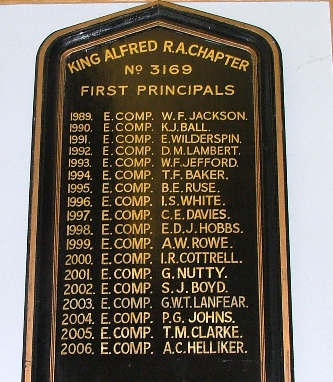 Consecrated 11th March 1989 Meets at The Masonic Hall, Tivoli Lane, Boulevard, Weston-Super-Mare. King Alfred Chapter No. 3169 is one of the youngest Royal Arch Chapters in the Province of Somerset and adopted the name of its sponsoring Lodge. King Alfred of Wessex defeated the Danes at Edington in Somerset and thereafter his kingdom was left in peace.